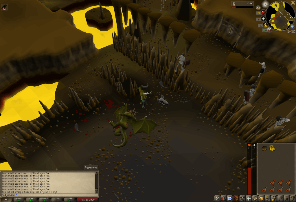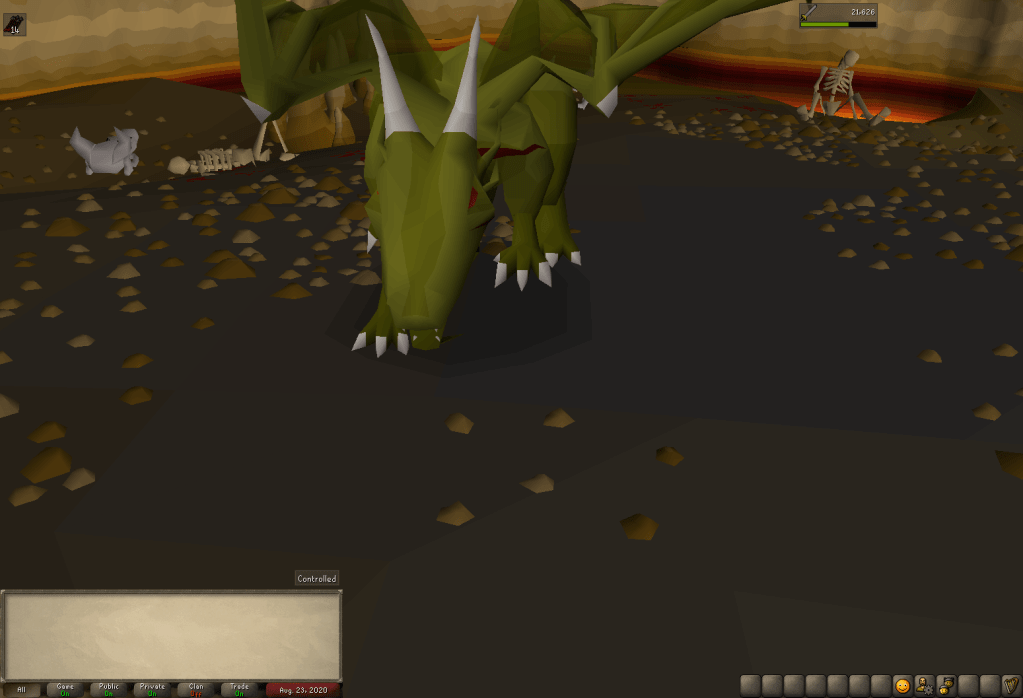 Once inside the Crandor Volcano there’s a little dungeon here filled with skeletons. They do attack on site but aren’t hitting hard enough to be a serious threat. I leapt over a wall to face Elvarg himself!