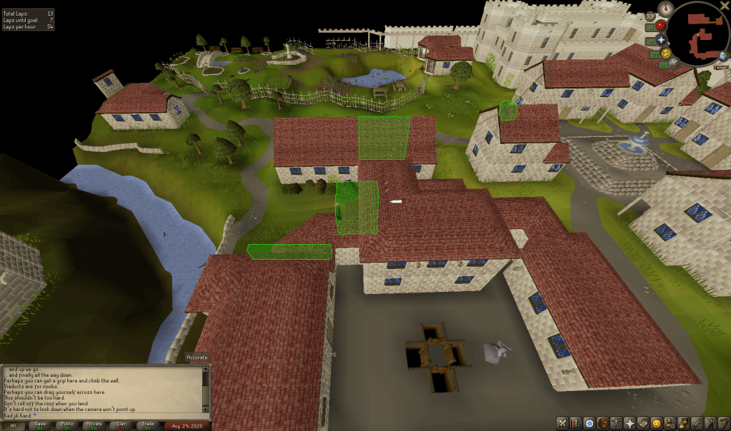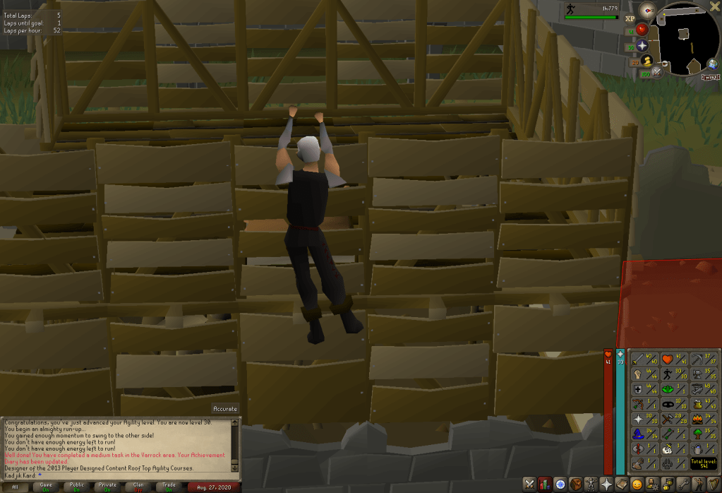 Runelite was also a big help here. The agility addin counts down the laps remaining for each agility level and highlights the Marks of Grace so you don’t miss them. I found myself saying “it’s only 20 more laps until the next level. I have time for that”