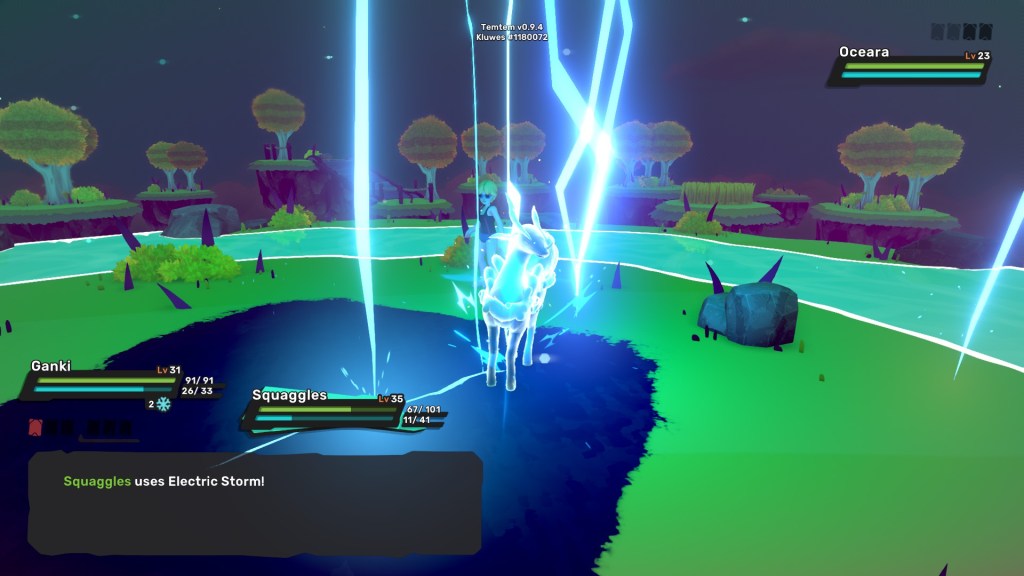 After beating Rawiri, we continued on with the main quest. We had some technical difficulties with a cable car that was suppose to take us to another zone. Somehow I ended up spawning outside the cable car and got stuck. I rebooted my game but wasn’t able to see my co-op partner anymore. In an effort to see if we could interact at all I challenged him to a Casual Battle. It was a close fight, coming down to my final Temtem and Brother’s (PancakeJohnson above) final two. I lost but my last Temtems put up a valiant effort.