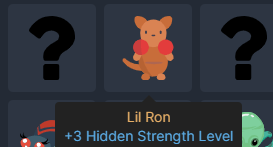 I unlocked the Strength pet this week: Lil Ron provides +3 hidden Stregth levels. Not too bad!