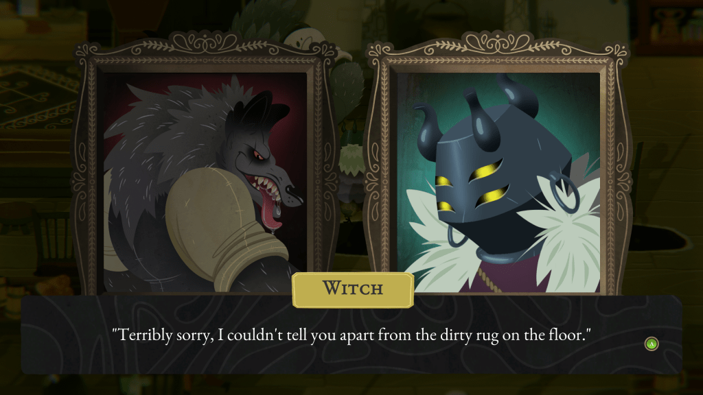 One of the reasons I didn’t initially buy Wytchwood is because one of the complaints I kept running across was that it was too short. I should have probably gone over to How Long to Beat to verify that, or maybe I did and thought that 10 hours was too short at the time. Now that I’ve played it, 10 hours is plenty. Any longer and it would have out stayed its welcome. I can only run back and forth, gathering wood yet again, before I say enough already. With that said, I didn’t have to spend too much downtime in between quest steps gathering materials. The crafting recipies range from 1-8 materials so I usually only needed one or two more of each ingredient to complete the recipe.