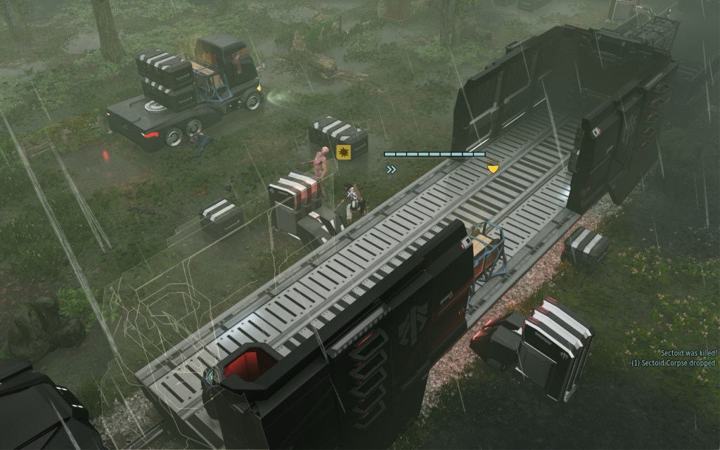 Taking Naithin’s advice from the footnotes of his last turn, I took Ranger Silentdeath on a scouting mission moving one action point at a time. I have a tendency to get our Rangers in some real bad situations by overextending them. This worked out as Silentdeath spotted 3 Chryssalids right off the bat. The team was able to clear this group out in one round with no damage taken. On the enemy’s turn a Gatekeeper started to pick off civilians .
