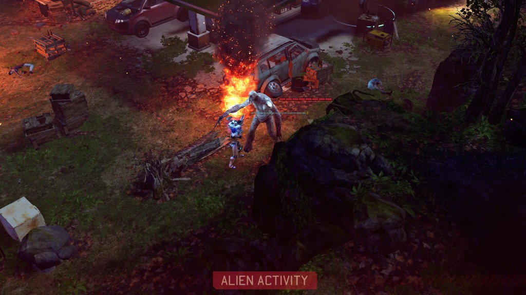 The last pack of enemies containted one murderous Gatekeeper, two Advent solders, and one lone Chryssalid. Bookahnerk and Silentdeath were hunkered down by a pile of burning tires, great place for cover by the way, and were able to take down one of the Advent solders right away. Black Widow and Magi made quick work of the Chryssalid. That left the Gatekeeper and one solider.