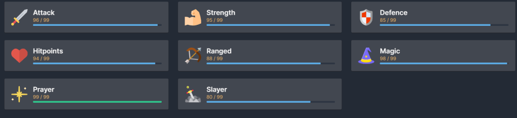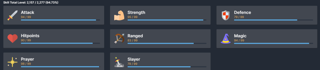| Prayer 107/99 (+5) | Slayer 94/99 (+14) |