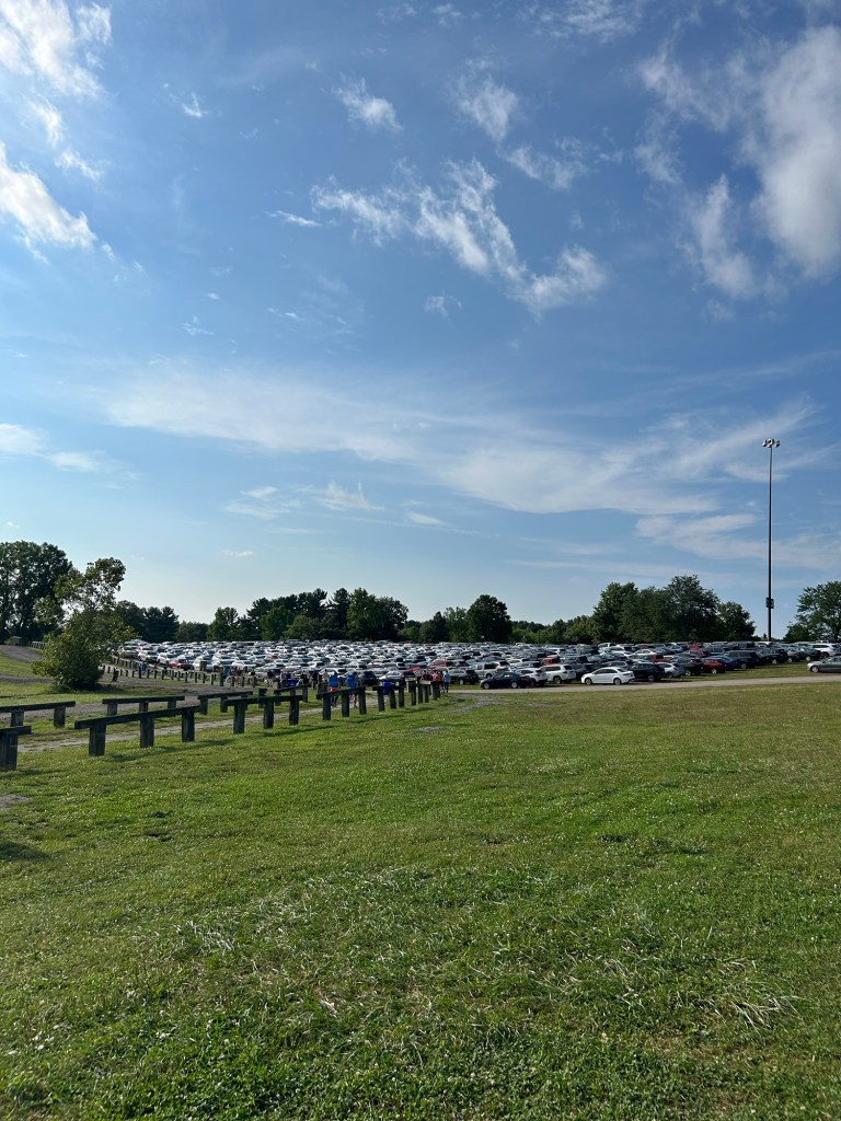 When we saw Jurassic Park, the place was pretty empty. We’ve been there plenty of times to see popular bands so it was nice to be able to park close to the venue and have space around us on the lawn to spread out. Expecting a similar experience this year, we planned to arrive about an hour before show time to get some snacks and settle in before things started. When we got there we were shocked to see the sea of cars ahead of us. The closest parking options were in the back grass lots which are like a mile out.